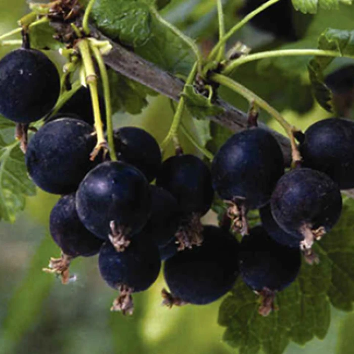 These large, black berries are a delicious sweet-tart cross of Gooseberry and Black Currant. Loaded with vitamin C, the plump yet firm berries are excellent for fresh eating, jams and jellies. The easy-to-grow self-fruitful shrubs grow 3 to 5 feet tall and are resistant to many diseases and pests that typically plague currants and gooseberries. Easily adaptable to most soils with little or no use of fertilizers or pesticides and hardy to -40 degrees F.